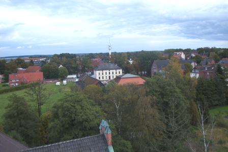 der Kirchturmspitze der Johannes-Kirche aus ...